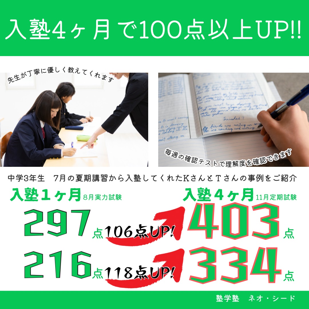 進学塾ネオ・シードでは少人数の集団授業&個別指導で一人ひとりにあった指導を行い、確実に成績アップへ導きます🆙