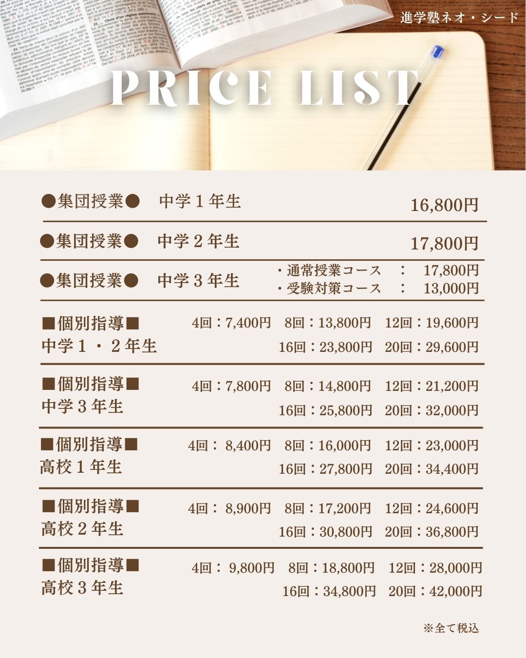 ※通常授業コースと受験対策コースの併用受講をお勧めします。
